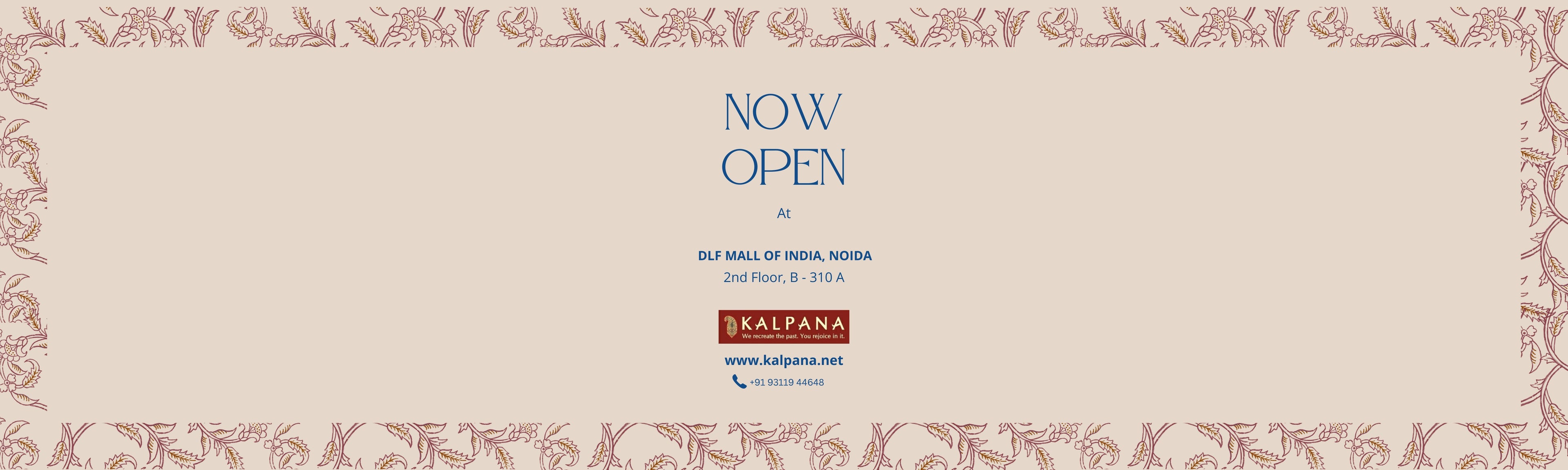 Kalpana is one of the most trusted & popular Saree shop in New Delhi. The Kalpana story began in 1972 at Connaught Place. In our tryst of reviving & promoting Indian art, handloom & handicraft, we have created our niche in reimagining them and presenting them in trending colours & layouts. We are recognised for our quality & aesthetic sensibilities in Kanjivaram, Banarasi, Upada, Paithani, Jamdani, Patola, Kantha, Kalamkari, Madhubani, Warli, Ajrakh and many more. Currently at 4 locations in Delhi/NCR, Kalpana stands for a 'less is more' approach towards hand-made & hand-crafted textiles. Popular products include Sarees, Unstitched Suits, Salwar Kameez & Kurtas.