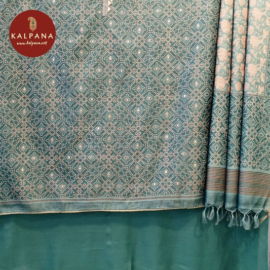 Printed With Embroidery Blended Tussar Silk Unstitched Suit