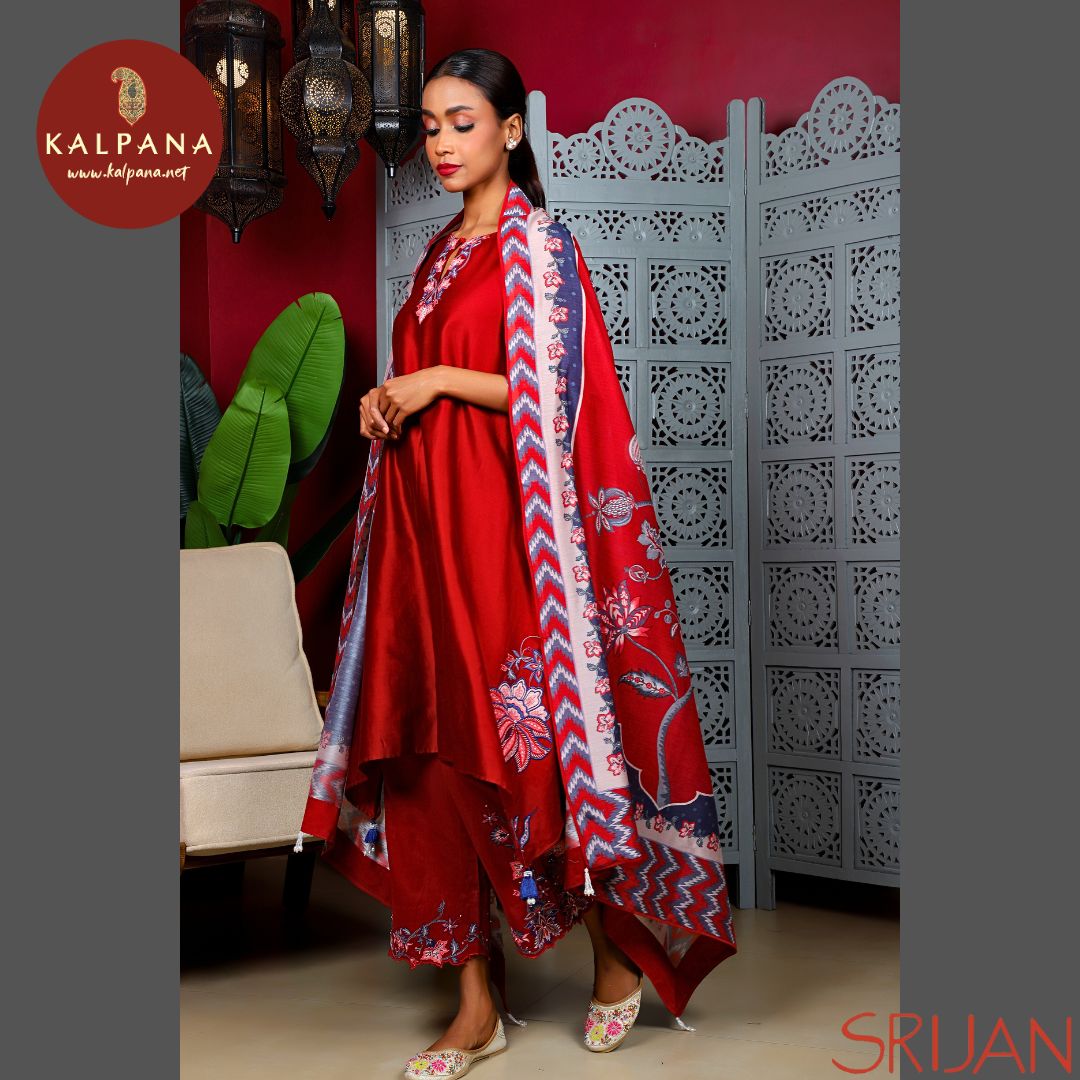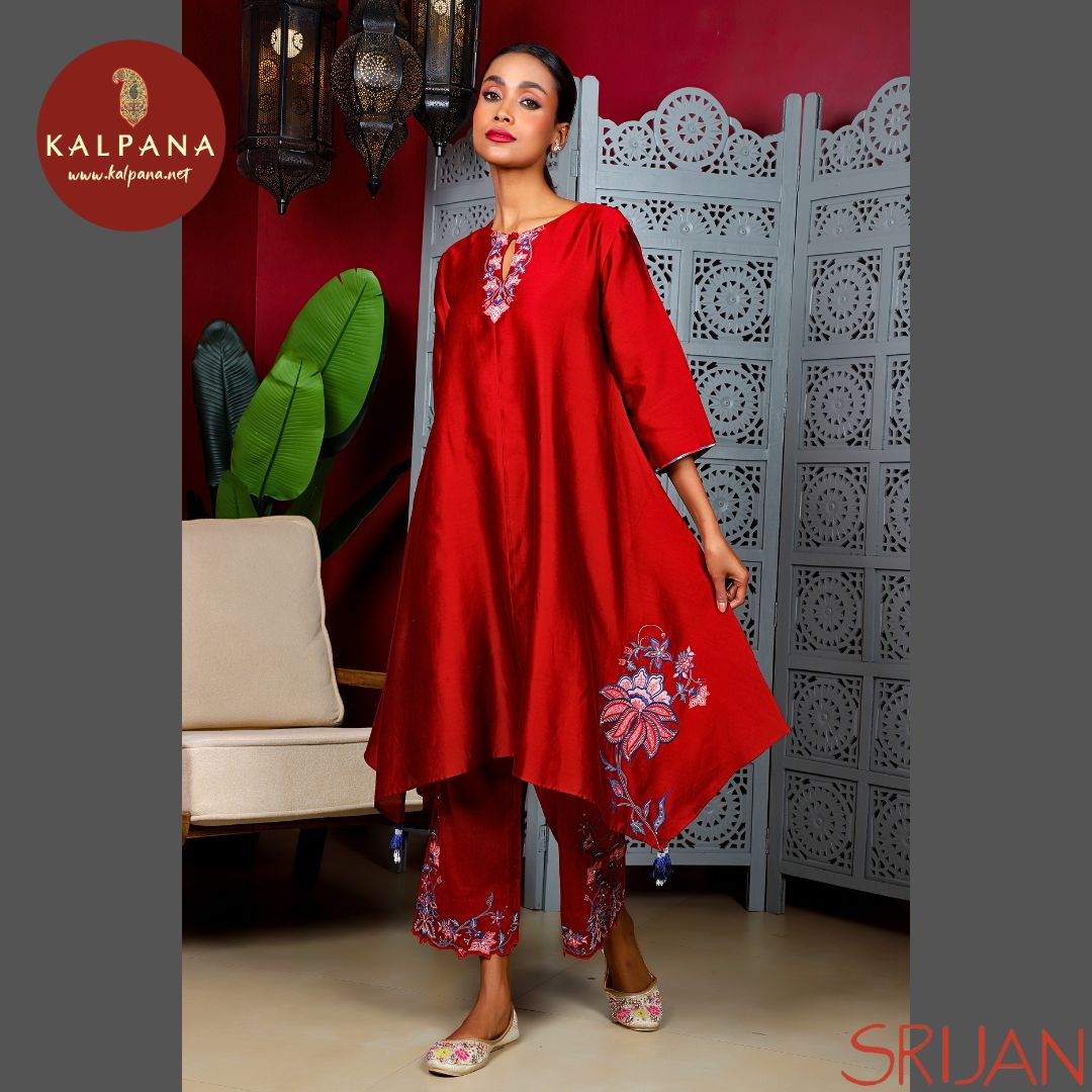 Top : Chintz Small Kalidaar Red Chanderi Shirt and round neck with key hole Neckline.