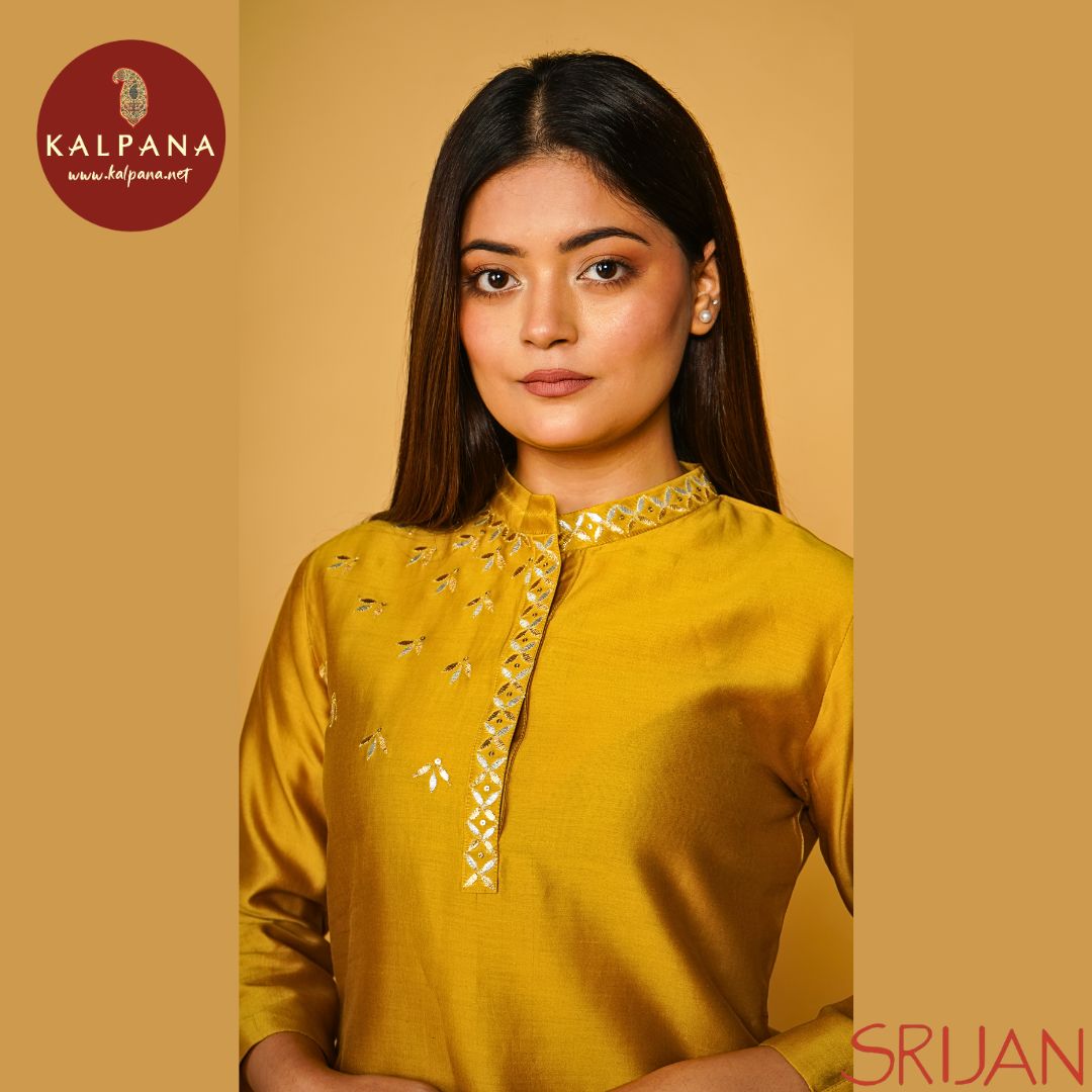 Top : Gotta Patti A Line Musturd Chanderi Shirt and kurta patti Neckline.