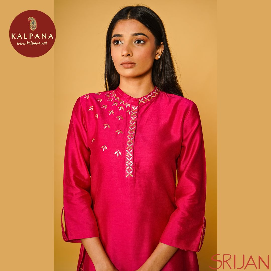 Top : Gotta Patti A Line Pink Chanderi Shirt and kurta patti Neckline.