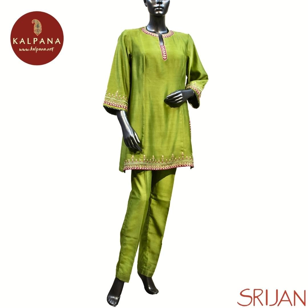 Bottom : The Cotton Satin Pant is Green.
