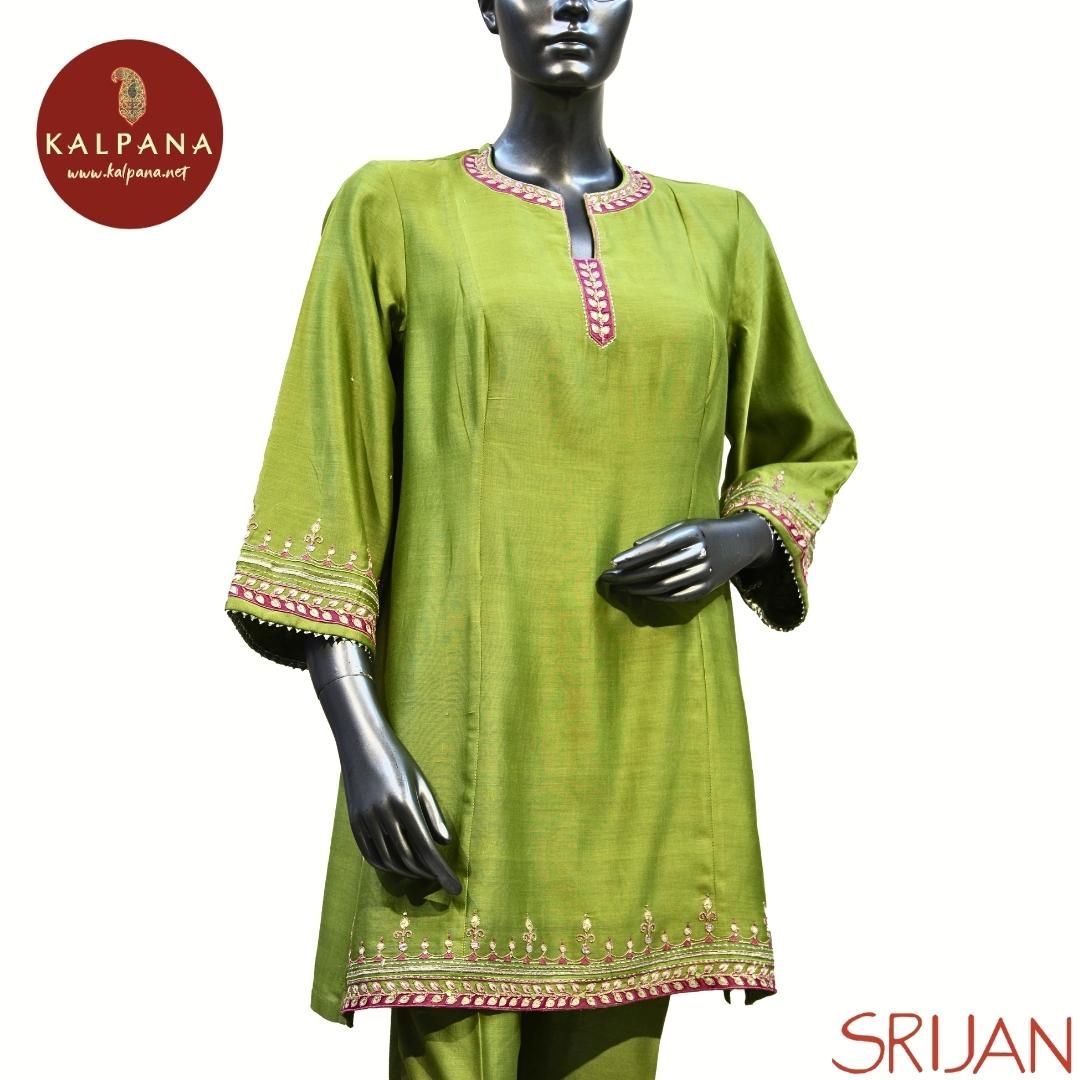 Top : Gota Patti Princess Line Pure Chanderi Shirt with All Over Plain with Embroidery and Embroidered Border. The Neckline is Kurta Patti