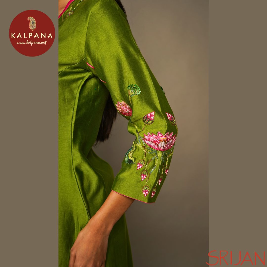 Top : Pichwai Princess Line Green Chanderi Shirt and V Neck Neckline. The Border is Embroidered