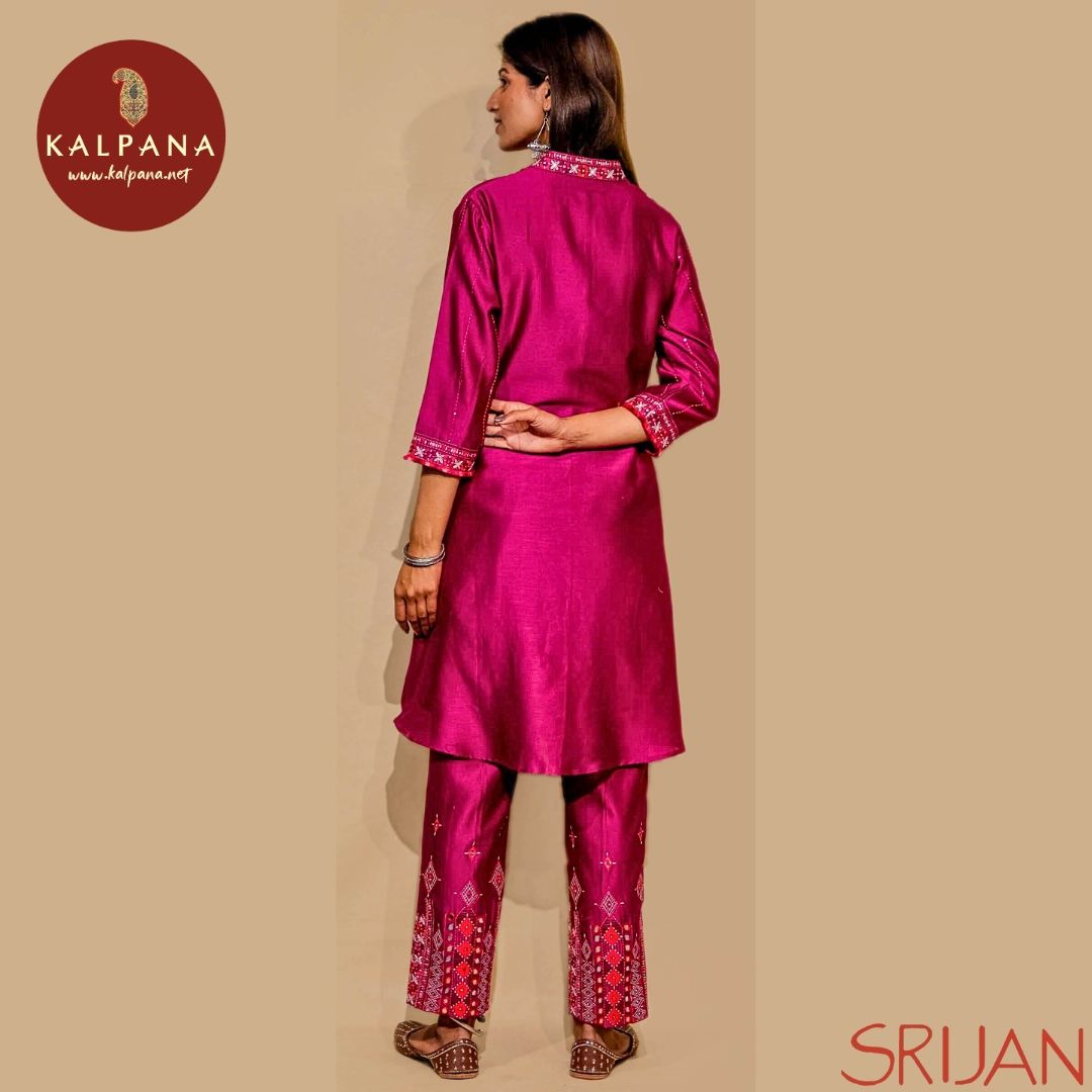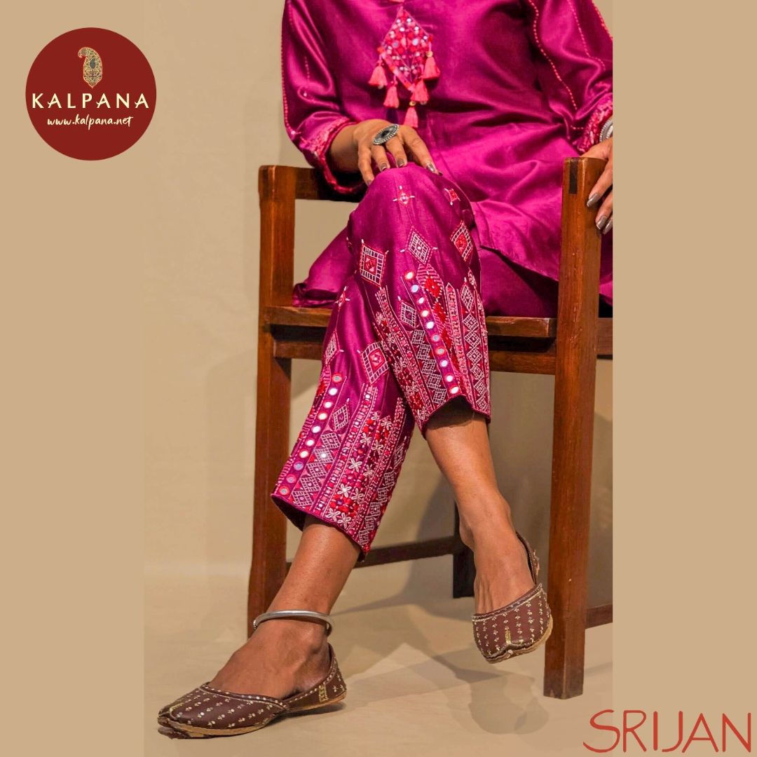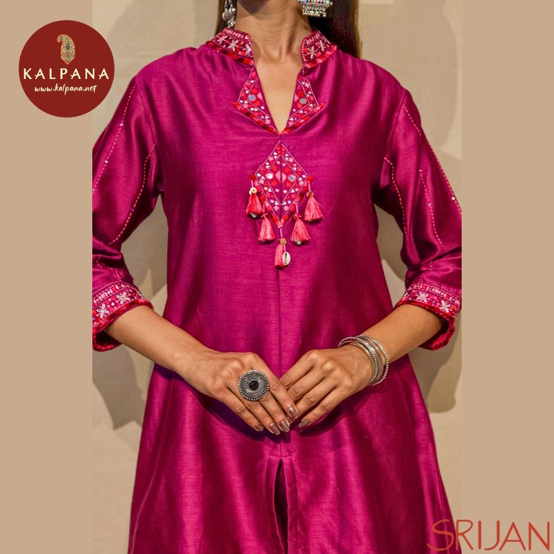 Top : Rabari A Line Purple Chanderi Shirt and V Neck with embroidery Neckline.