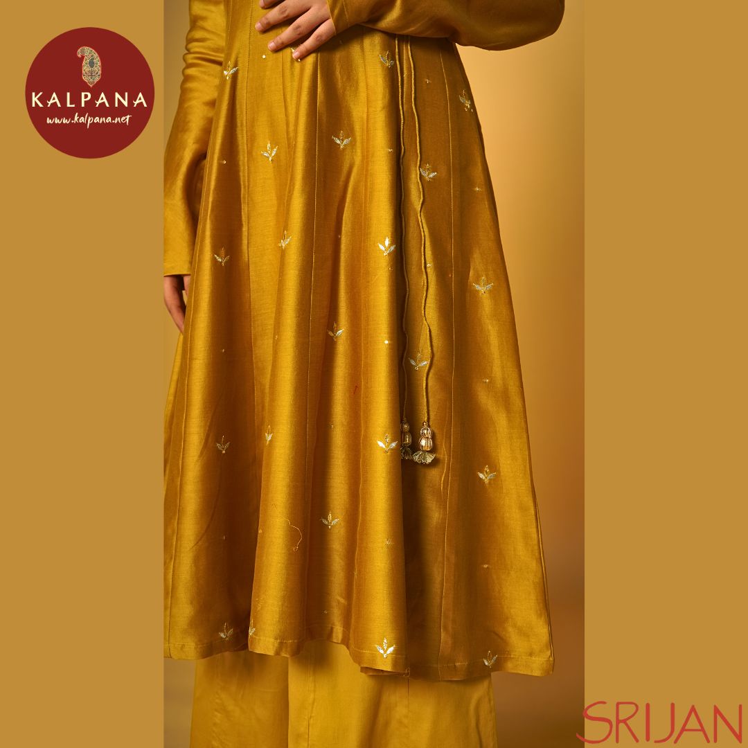 Top : Gotta Patti Large Kalidaar Musturd Chanderi Shirt and Angrakha Neckline.