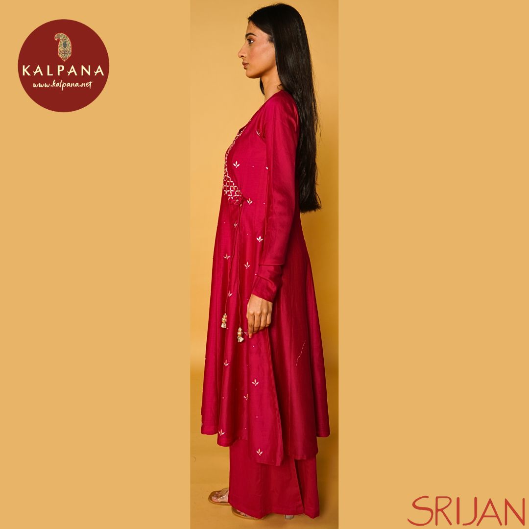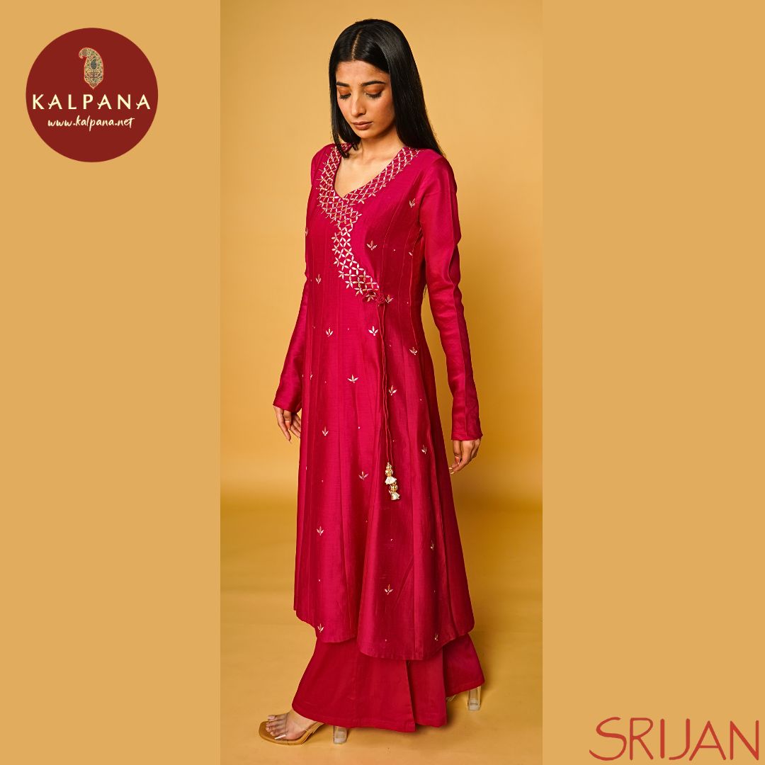 Top : Gotta Patti Large Kalidaar Pink Chanderi Shirt and Angrakha Neckline.