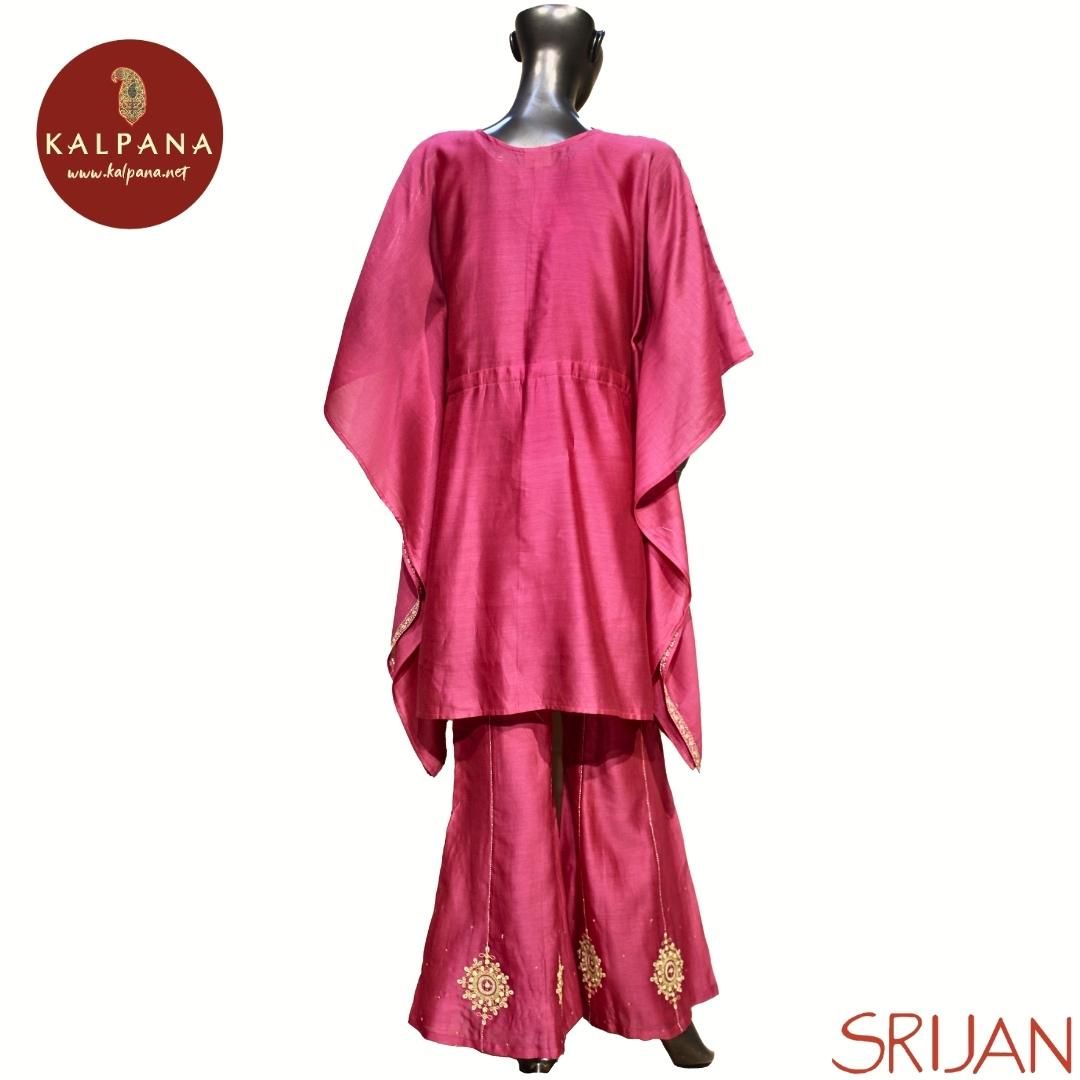 Top : Gota Patti Kaftan Pure Chanderi Shirt with All Over Plain with Embroidery and Self Border. The Neckline is Round