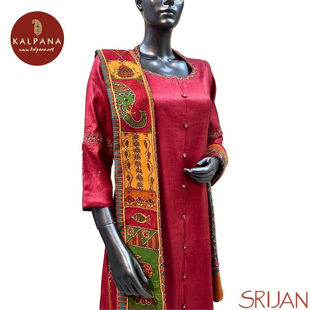 Dupatta: It comes with Contrast matched Red color Embroidered Chanderi Dupatta with Plain Border.