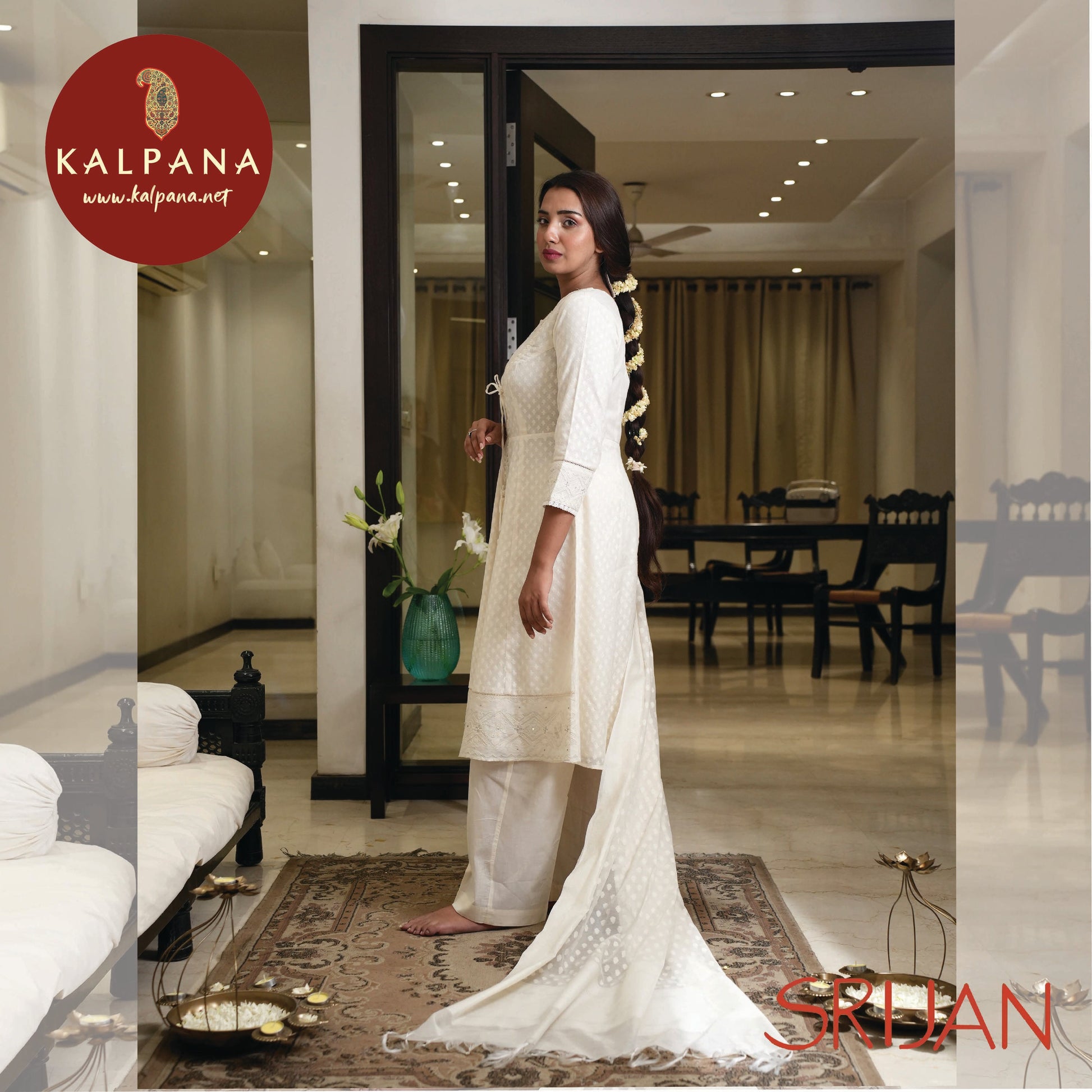 Bottom : The Cambric Applique White color Plazzo.