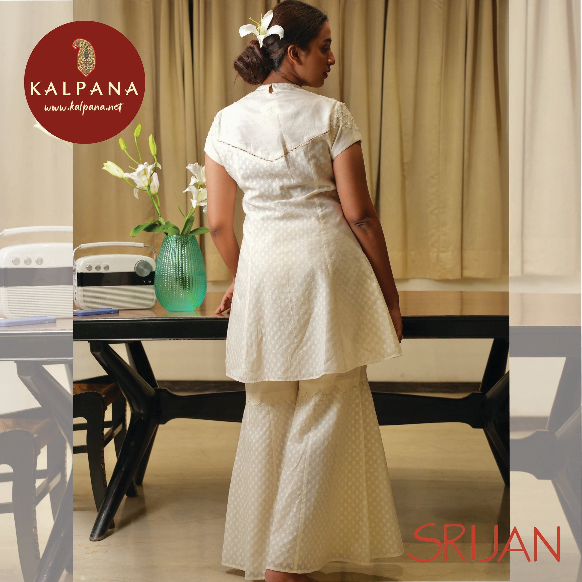 Bottom : The Cambric Applique White color Sharara (20 Kali Round) .