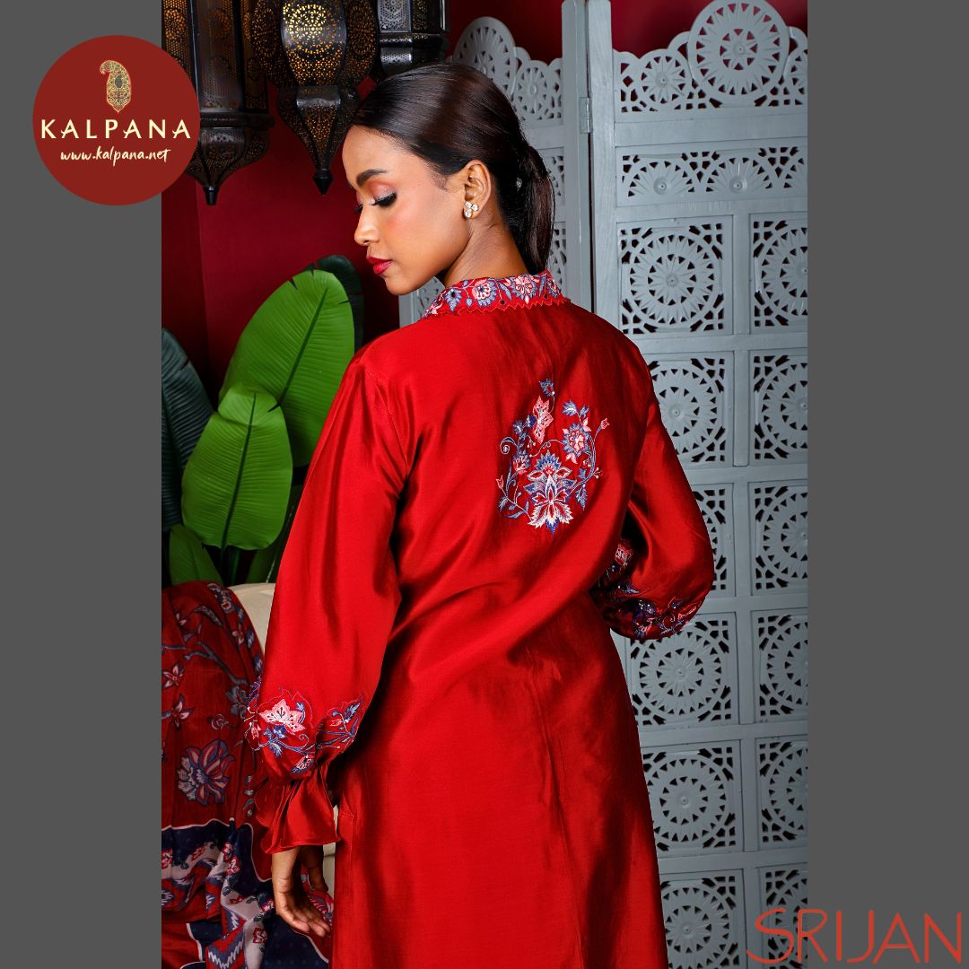 Top : Chintz Princess Line Red Chanderi Shirt and round neck with key hole Neckline.