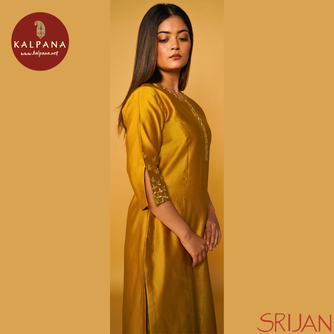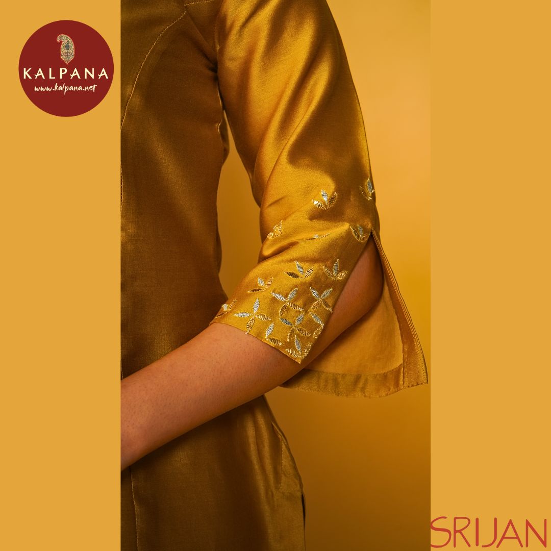 Top : Gotta Patti Princess Line Musturd Chanderi Shirt and kurta patti Neckline.