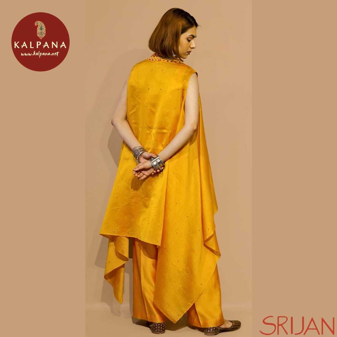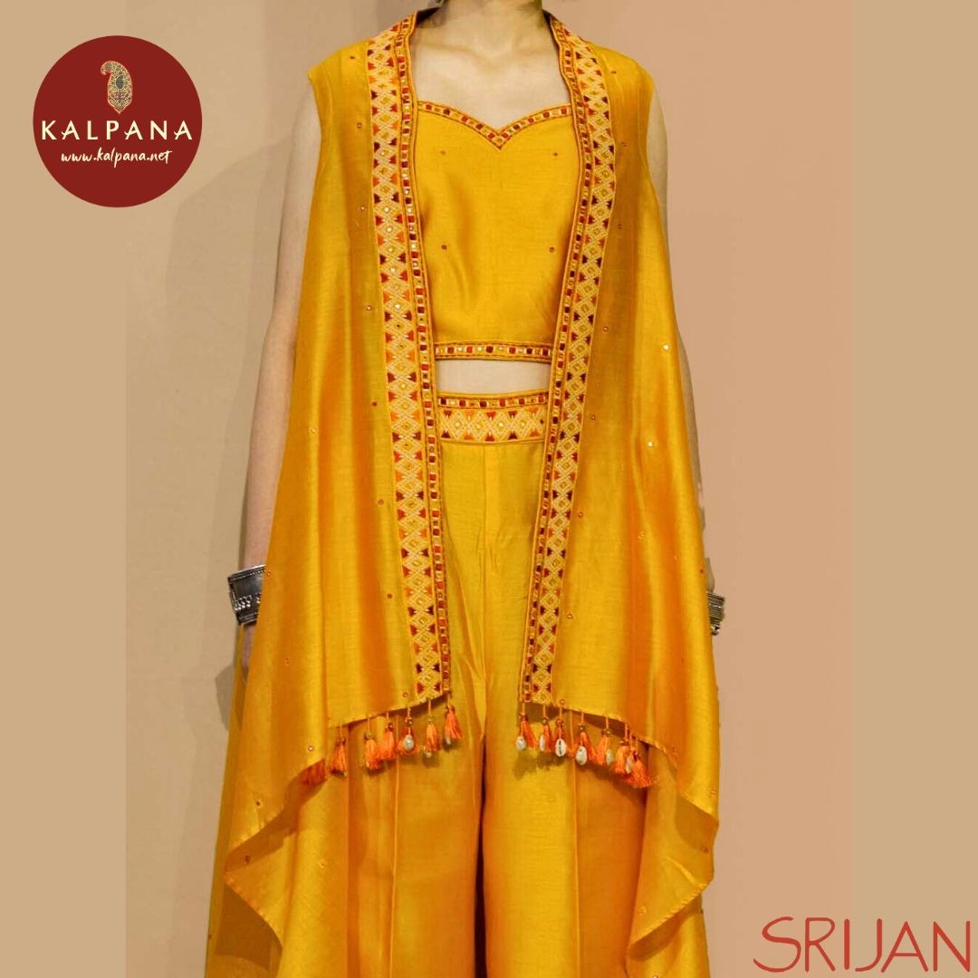 Top : Rabari Cape with in-shirt Yellow Chanderi Shirt and Sweetheart Neck with embroidery Neckline.
