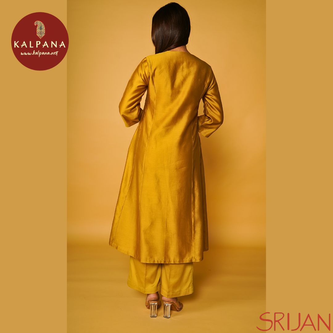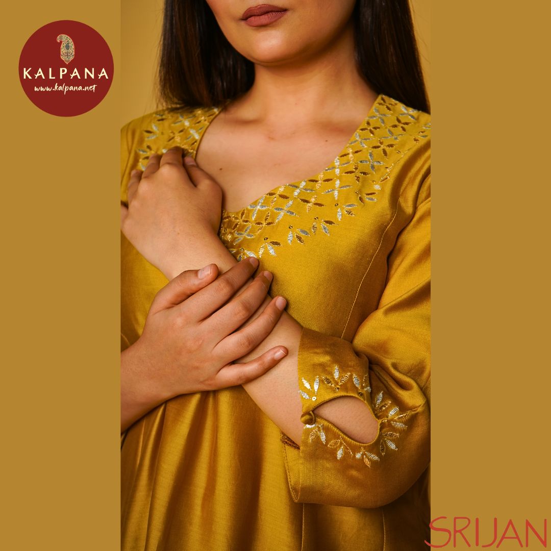 Top : Gotta Patti Princess Line Musturd Chanderi Shirt and V Neck Neckline.