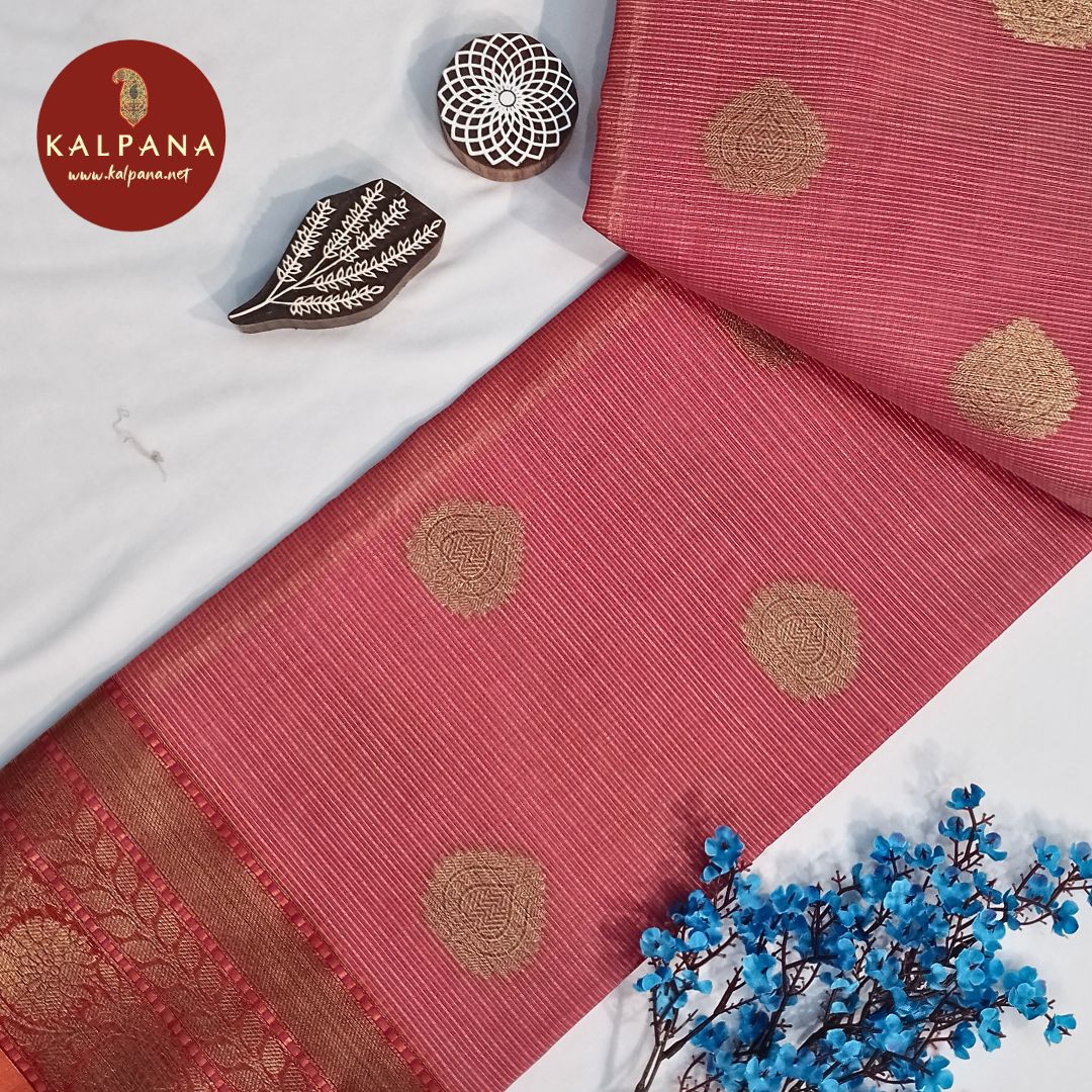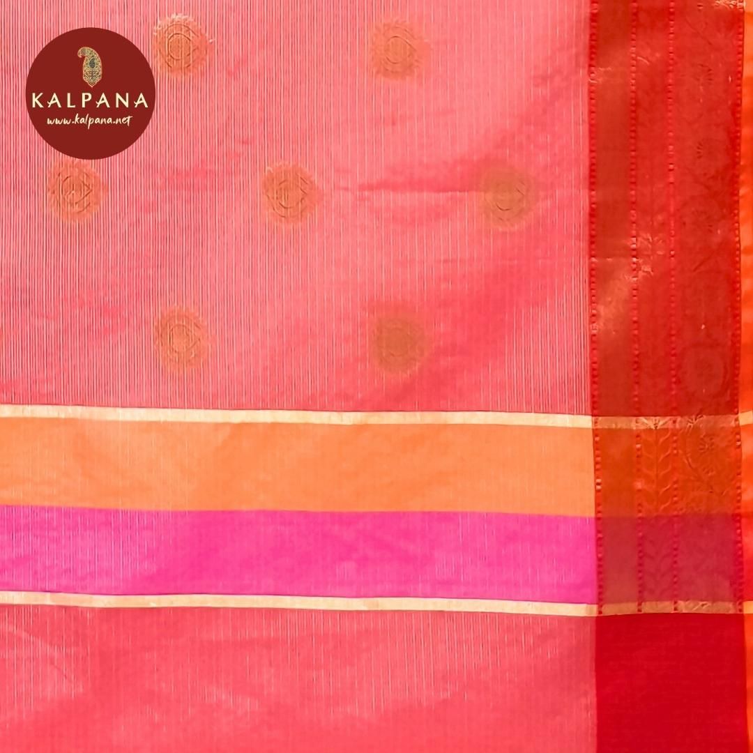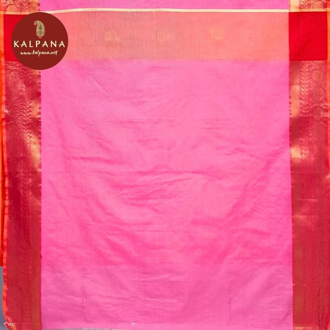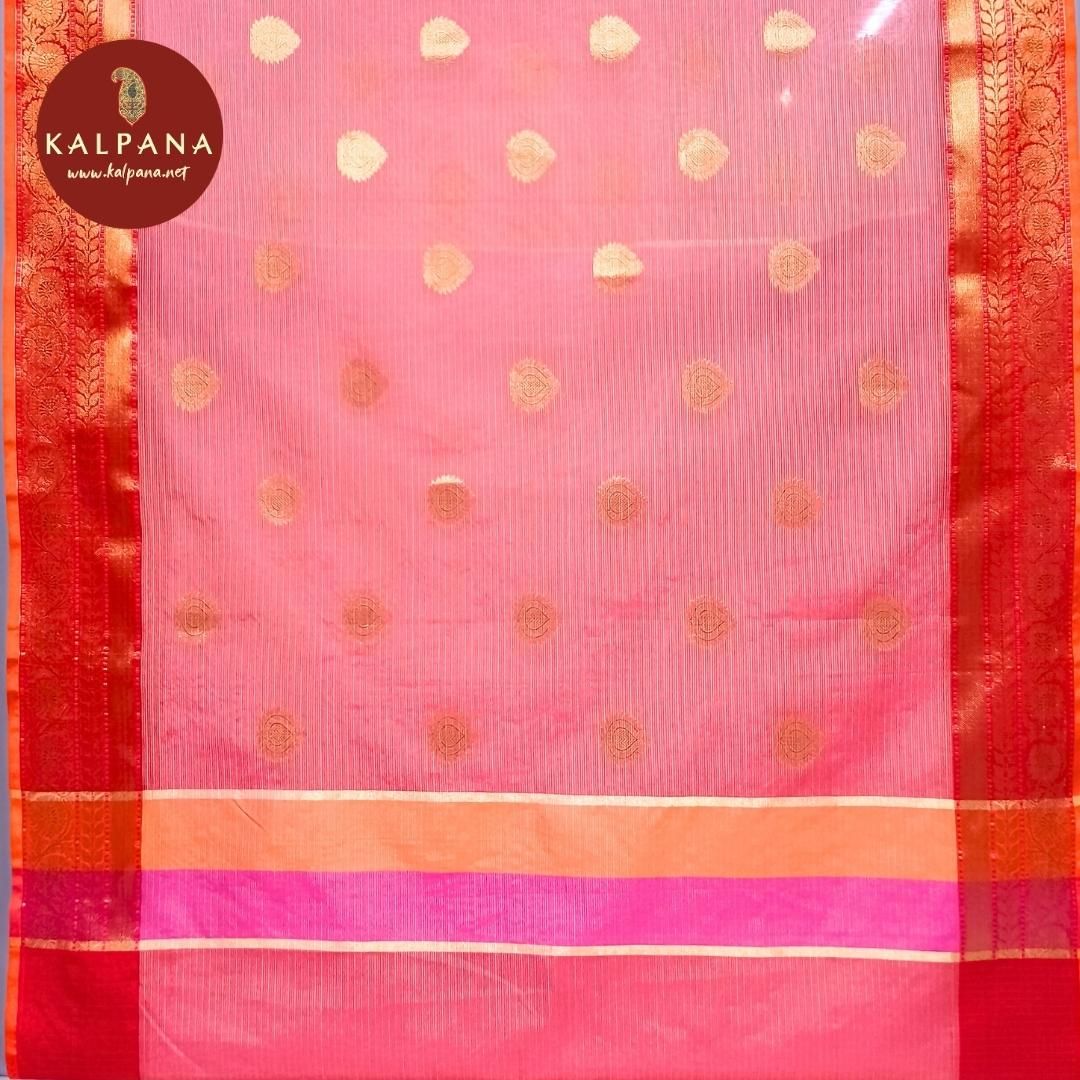 HotPink Banarasi Woven Blended Silk Kota Saree with Woven Zari Border. The Palla is Woven Zari. The Self colored Plain Unstitched Blouse with woven border has Woven Border Perfect for Semi Formal Wear in Summer season(s). Dry Clean Only.