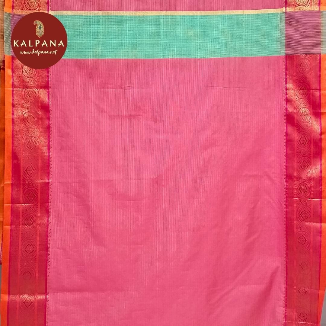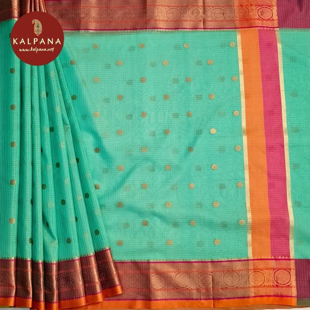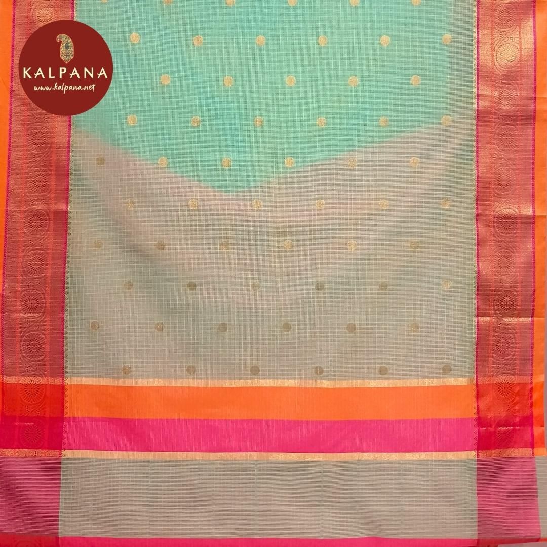 LightGreen Benarasi Woven Blended Silk Kota Saree with Woven Zari Border. The Palla is Woven Zari. The Self colored Plain Unstitched Blouse with woven border has Zari Border Perfect for Multi Occasion Wear in Autumn & Winter season(s). Dry Clean Only.
