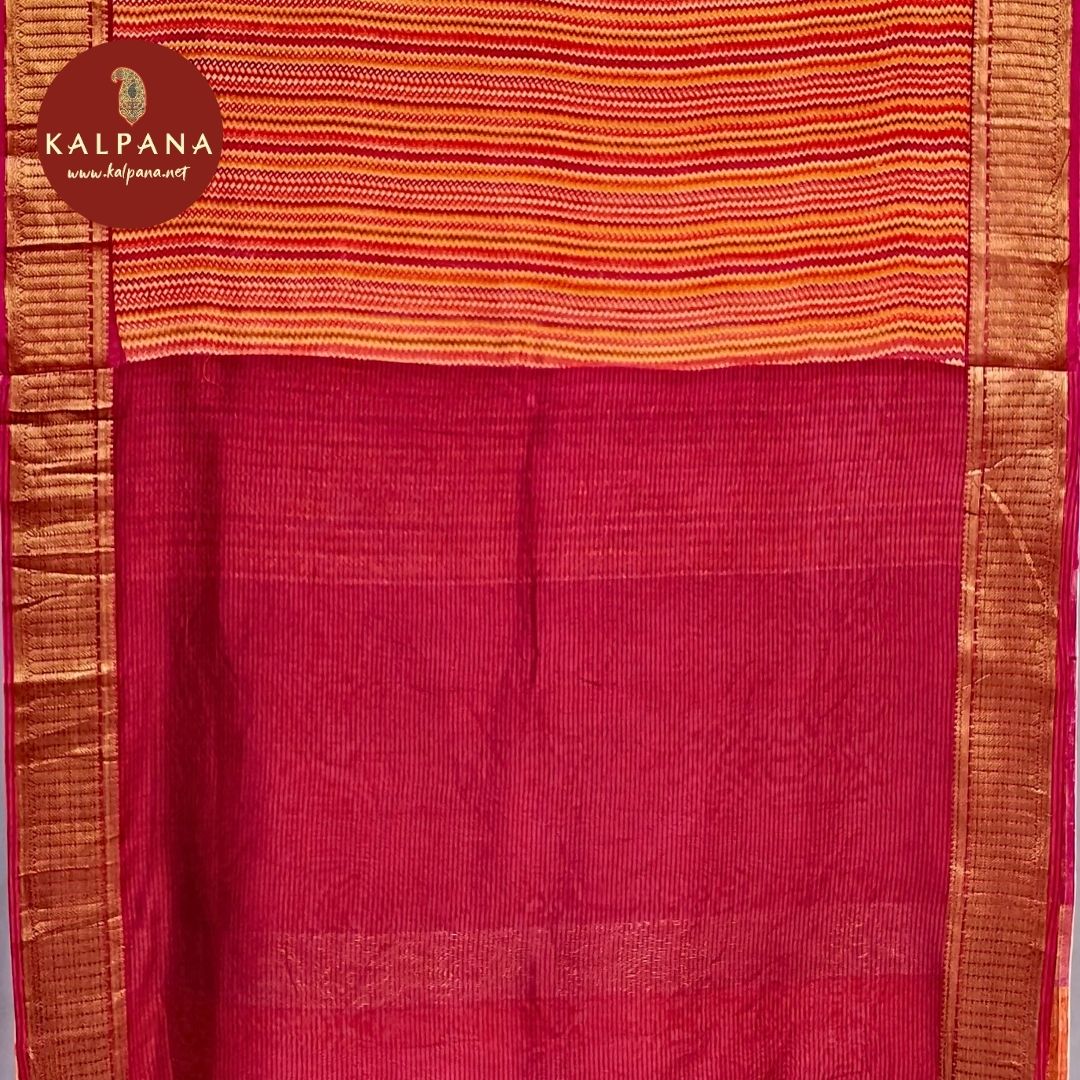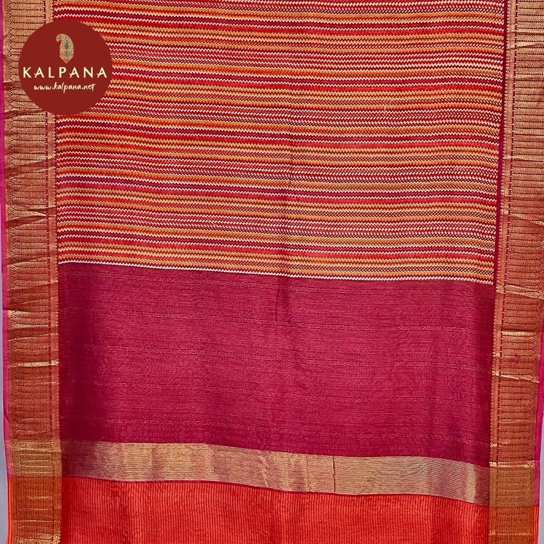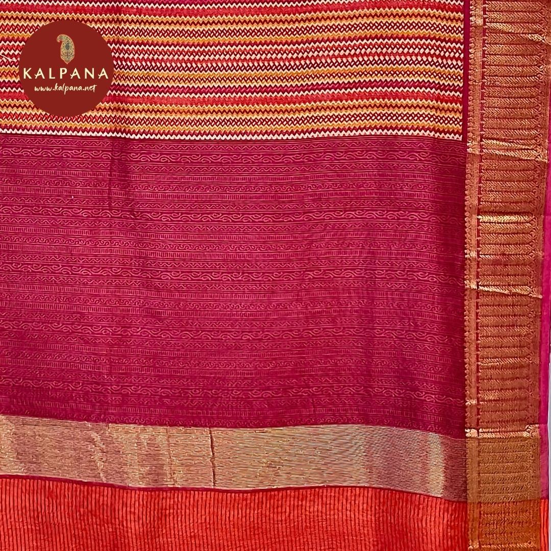 HotPink Printed Blended SICO Cotton Saree with Woven Zari Border. The Palla is Printed. The Self colored Plain Unstitched Blouse with woven border has Zari Border Perfect for Multi Occasion Wear in Autumn & Winter season(s). Dry Clean Only.