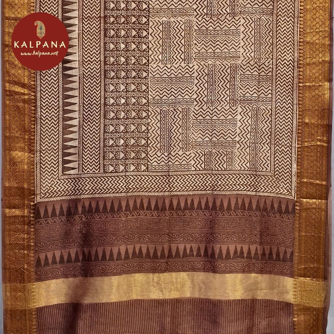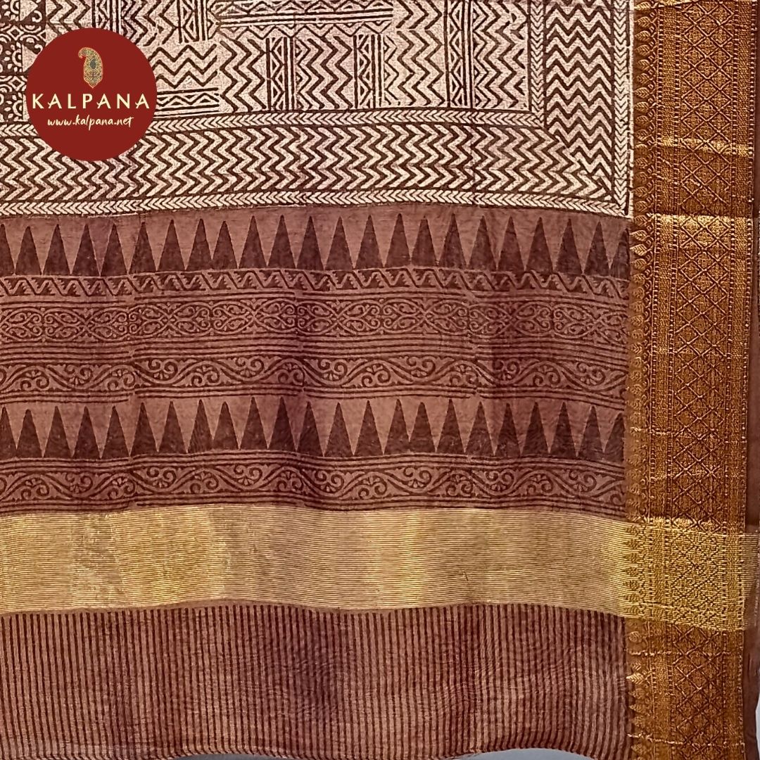 Brown Printed Blended SICO Cotton Saree with Woven Zari Border. The Palla is Printed. The Self colored Printed Unstitched Blouse with woven border has Zari Border Perfect for Multi Occasion Wear in Autumn & Winter season(s). Dry Clean Only.