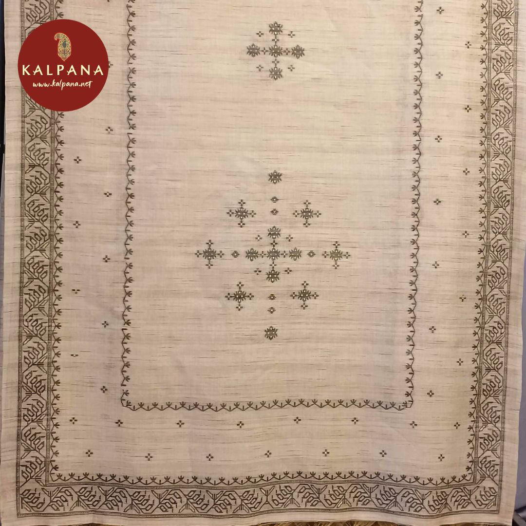 Shirt: Khaki Coloured Woven Blended Cotton Tusser Unstitched Suit and Border.