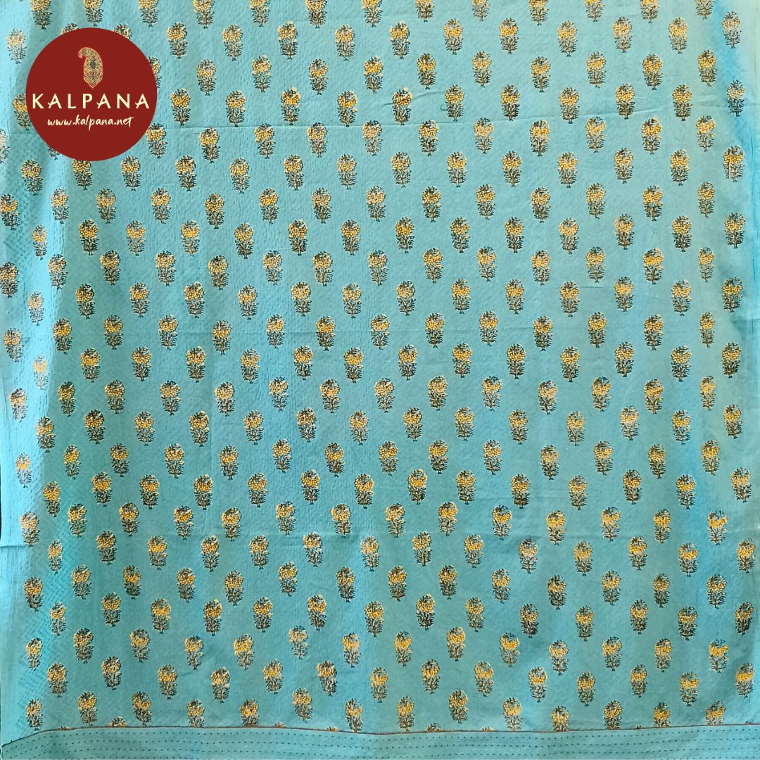Shirt: Light Turquoise Coloured Printed With Embroidery Pure Cotton Unstitched Suit and Border.
