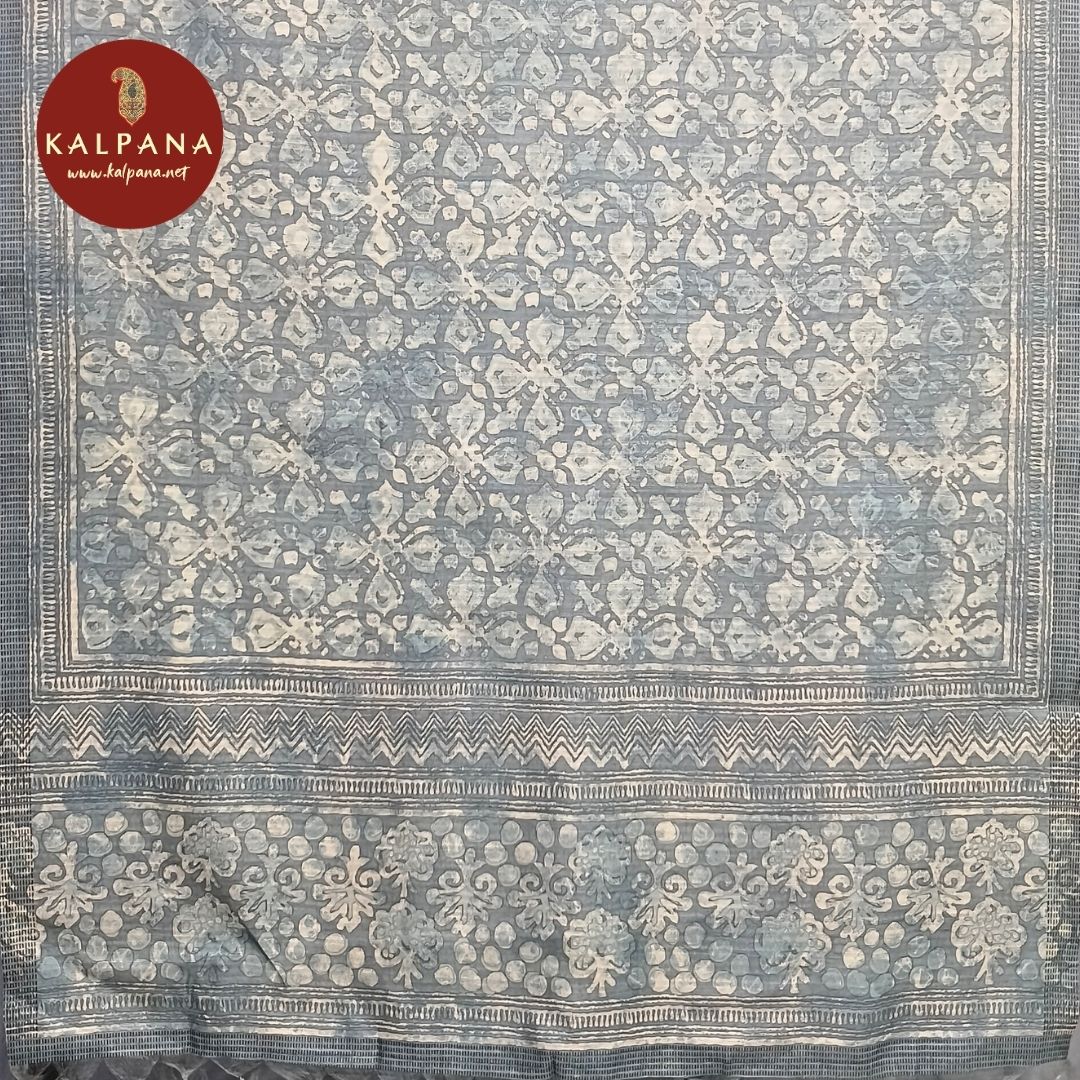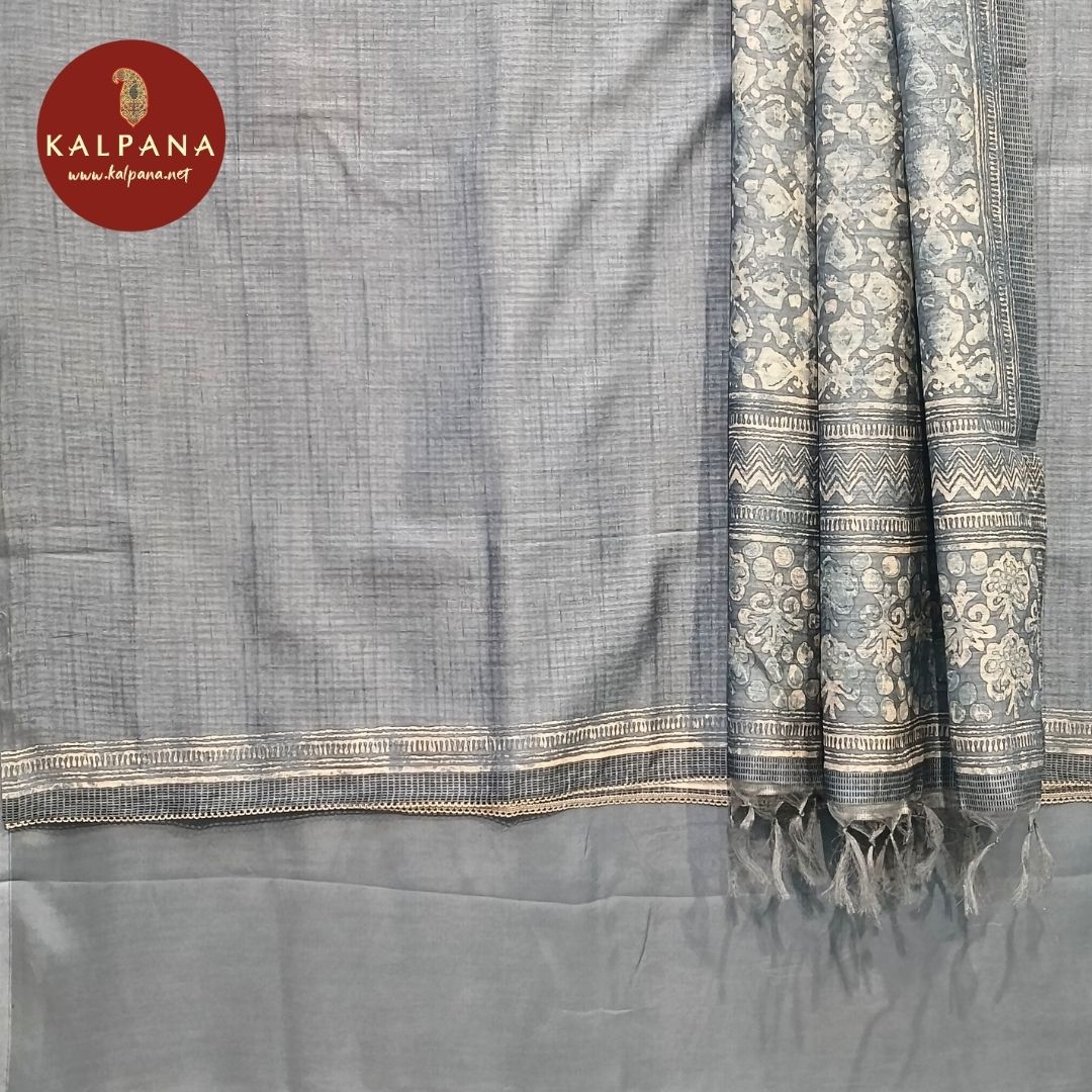Dupatta: Self Matched Grey Color Printed Tussar Dupatta with Plain Border.