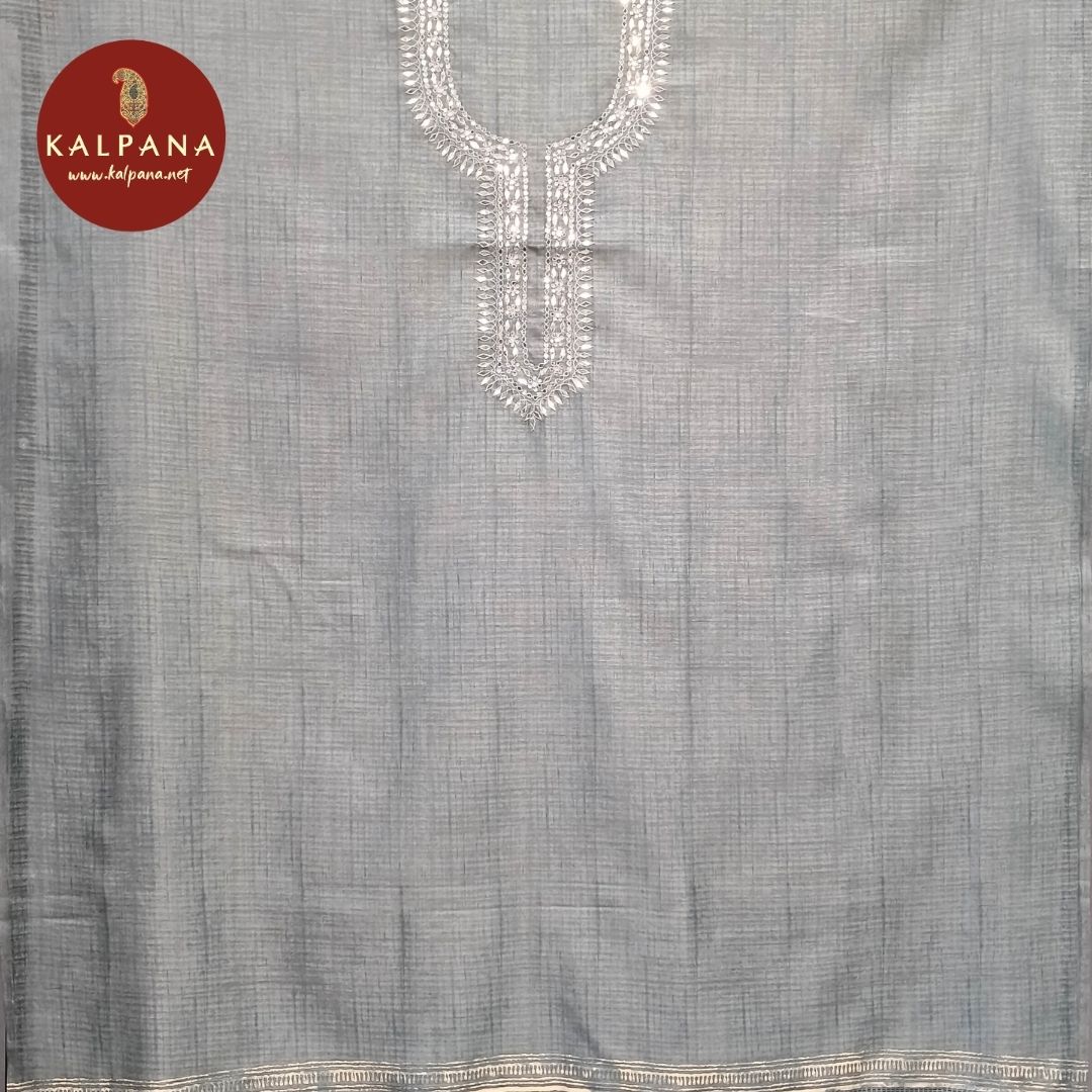 Shirt: LightGrey Coloured Embroidery Blended Tussar Unstitched Suit with All Over Plain with Embroidery and Embroidered Border..