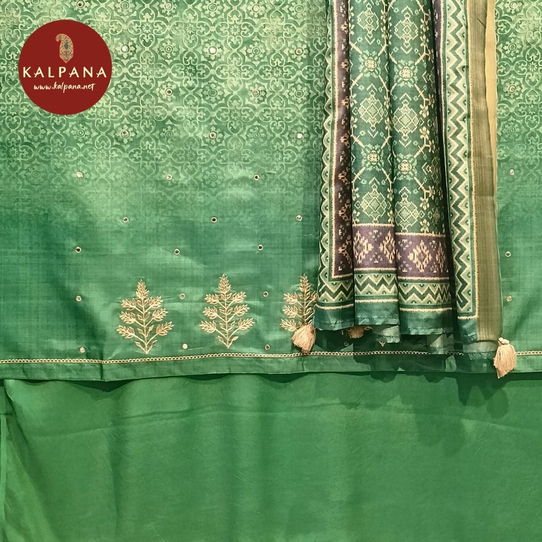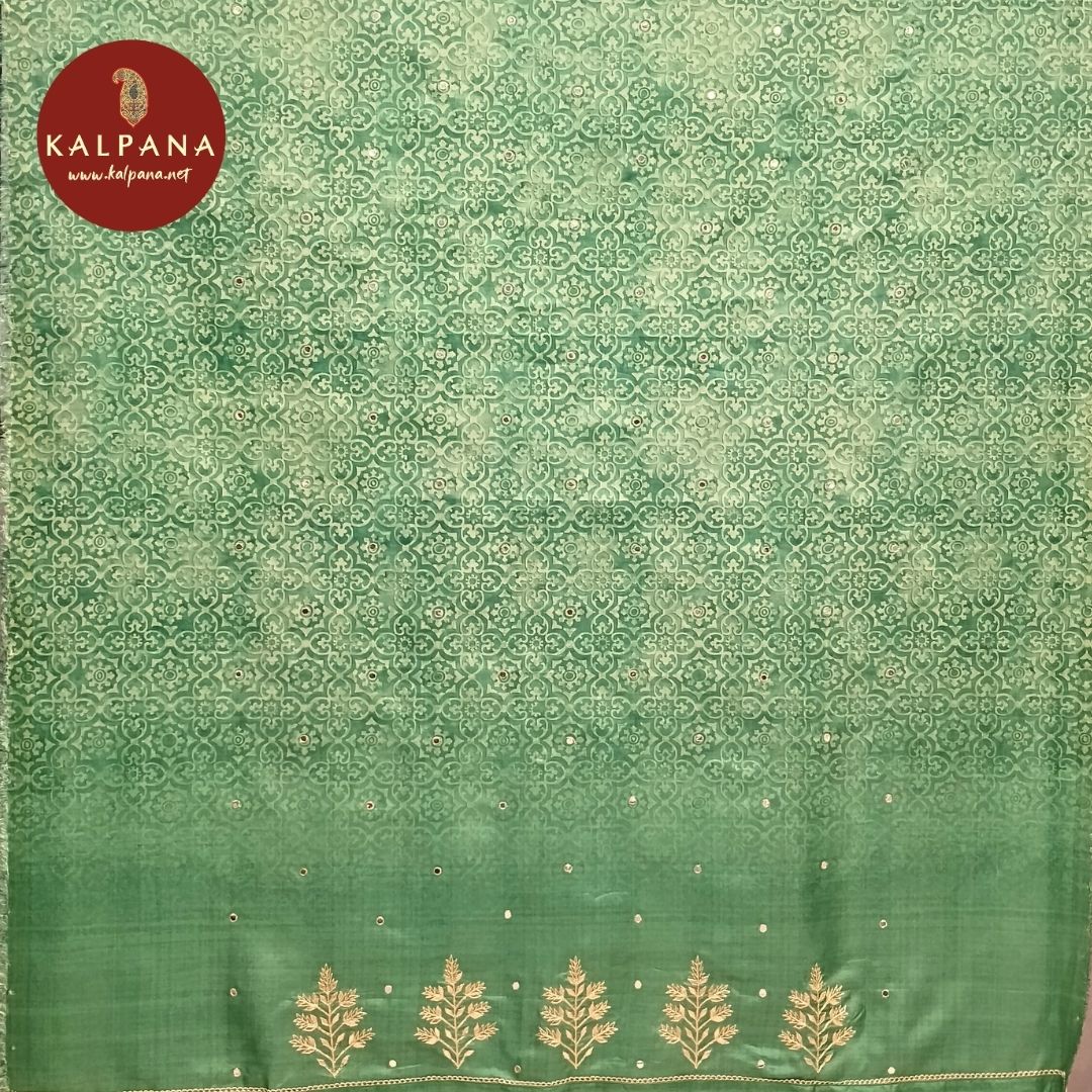 Shirt: Green Coloured Embroidery Blended Tussar Unstitched Suit with All Over Plain with Embroidery and Embroidered Border..