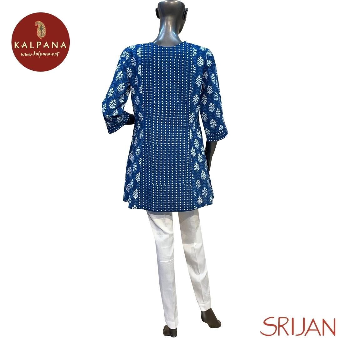 Indigo Small Kalidaar Pure Cotton Top. Perfect for Semi Formal Wear. Recommended for Summer season(s). Dry Clean Only